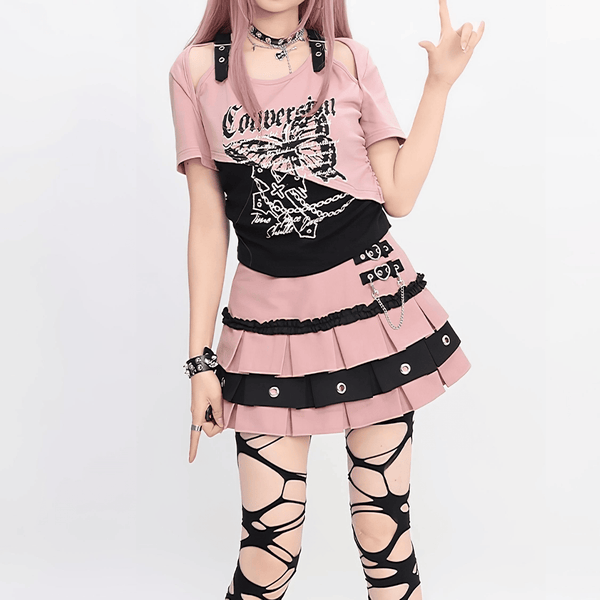【Catwish】チェーン&ハートベルトプリーツスカート◆ミニスカート 地雷系 S、M、L