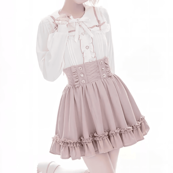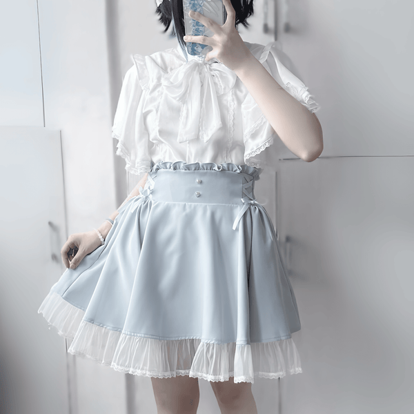 【Kanna】レース襟リボントップス×フリルスカートセット◆上下セット 地雷系 S、M、L
