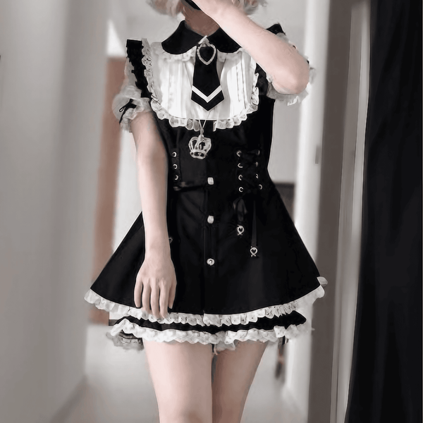 【升中味】クラシカルレースフリルセットアップ◆セットアップ 地雷系 S、M、L、XL