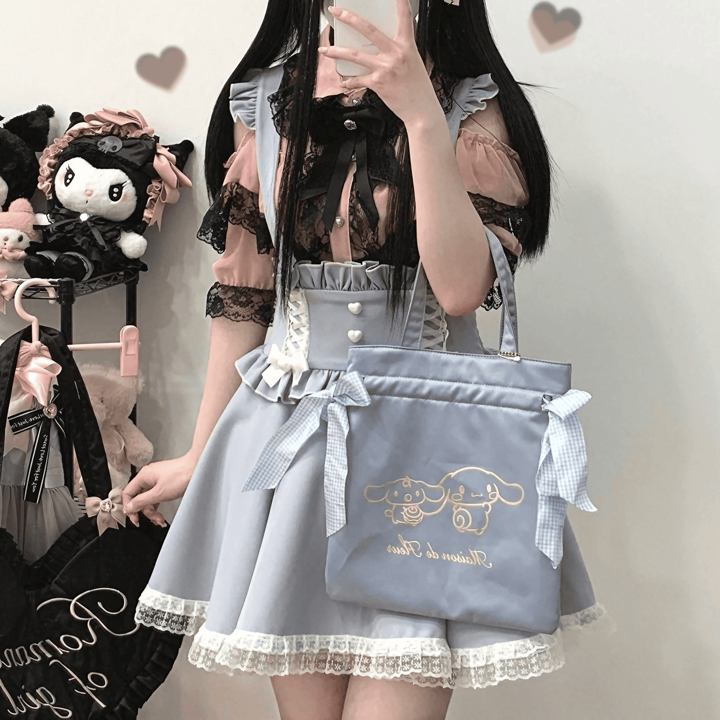 レースアップリボンサスペンダースカート◆サスペンダースカート 量産型 ワンサイズ