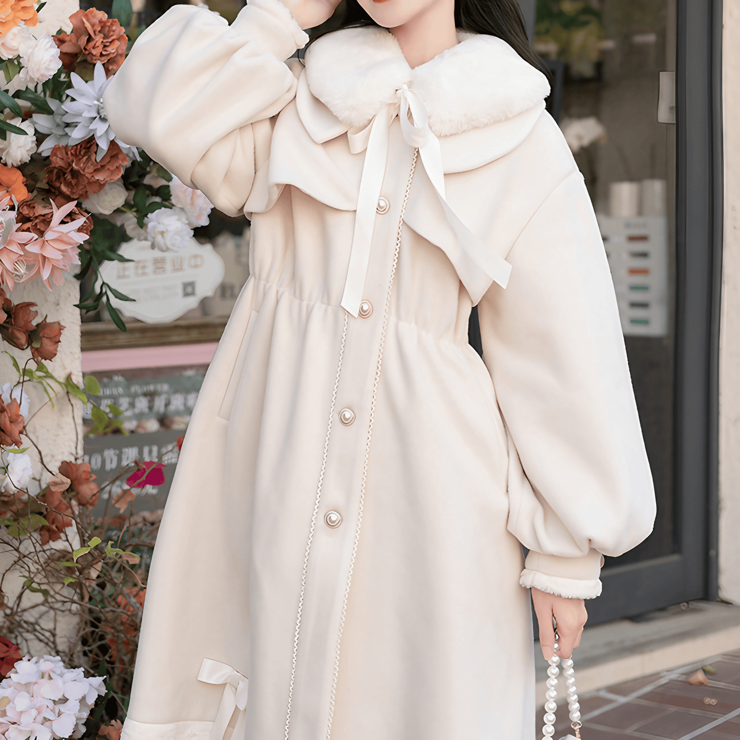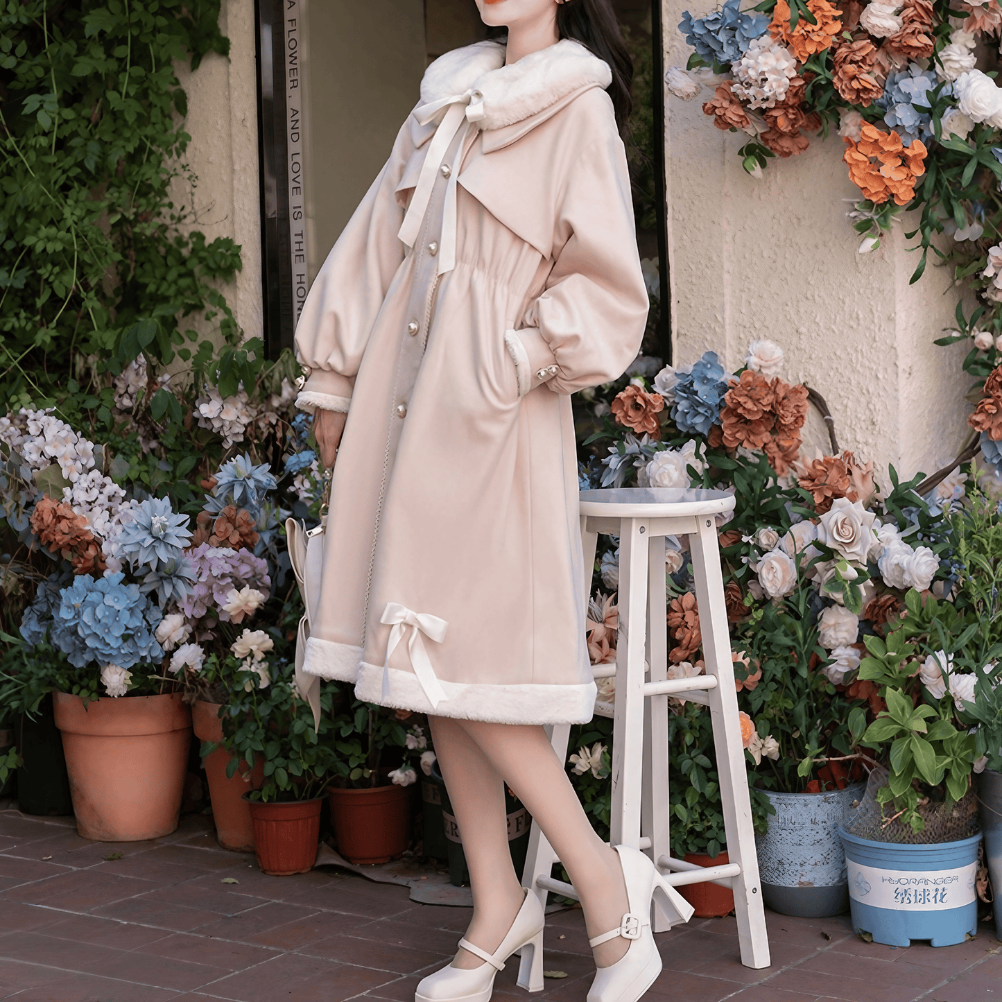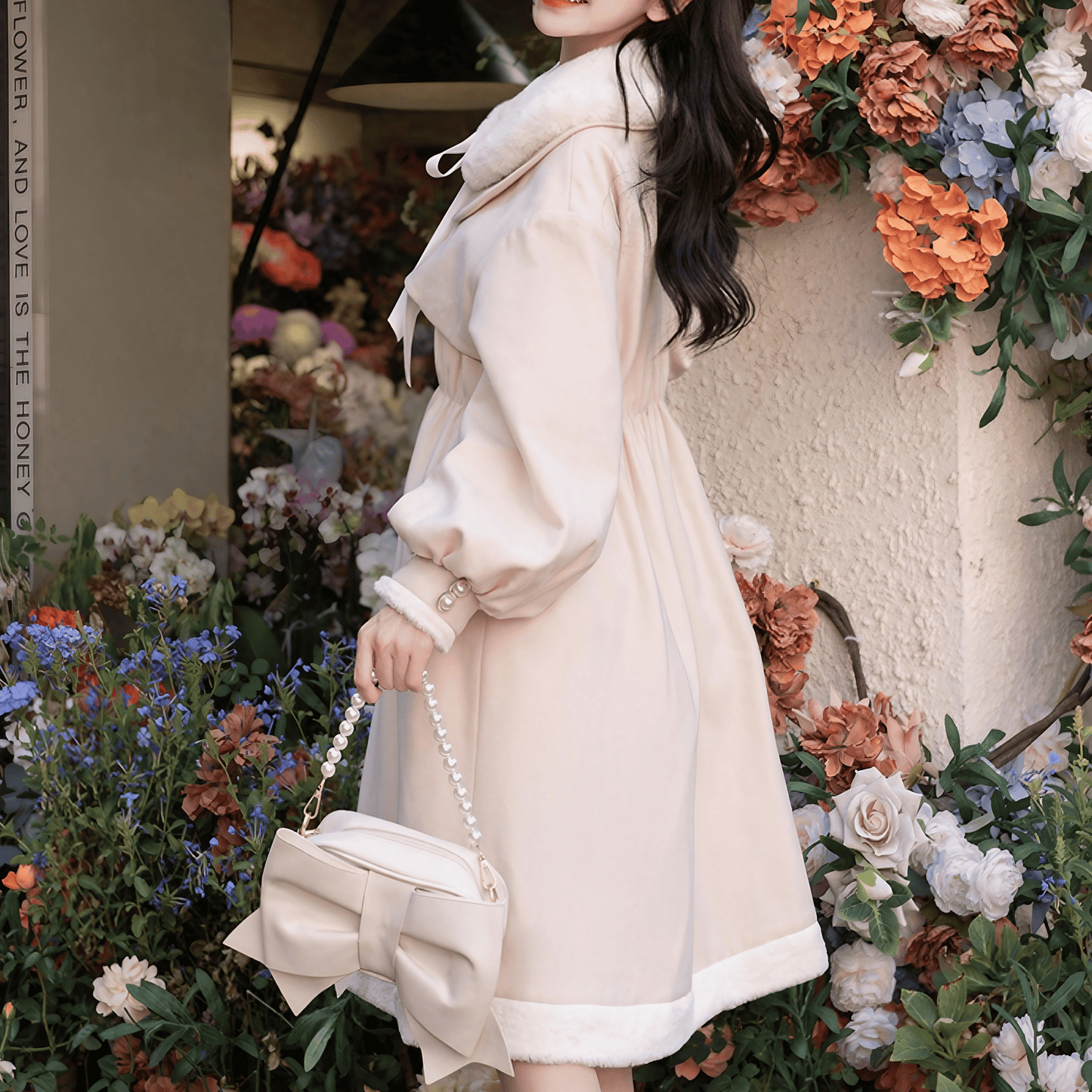 ファーカラーリボンデココート◆コート 量産型 S、M、L、XL