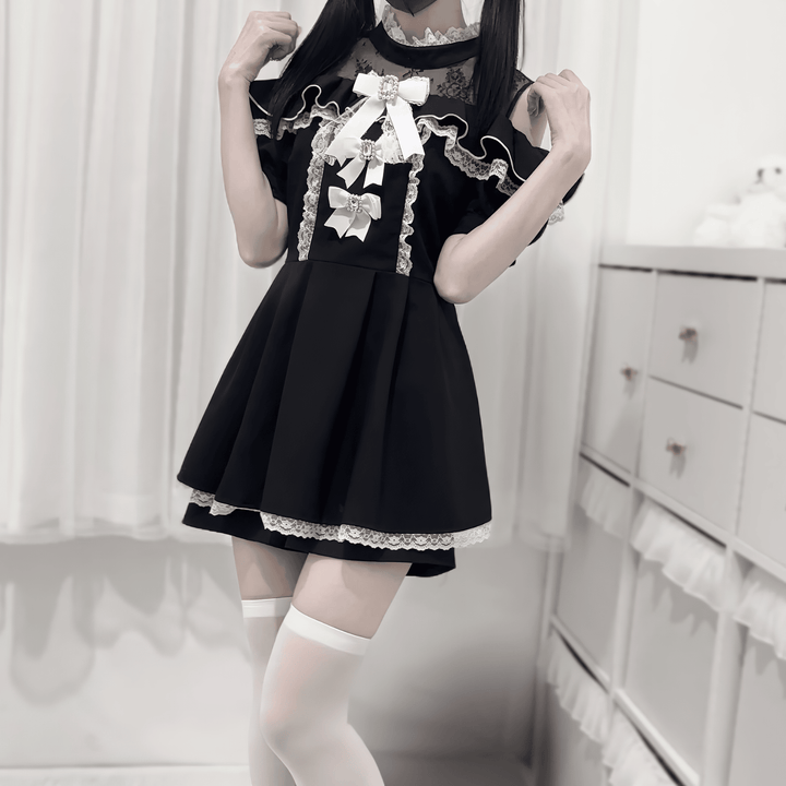 【nekura】レース&ビジュ―リボンフリルセットアップ◆セットアップ 量産型 M、L