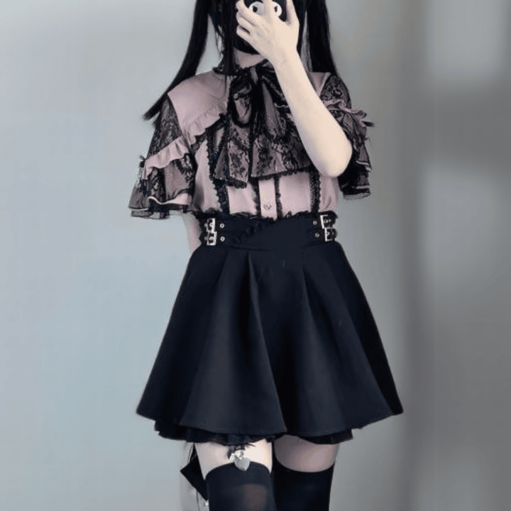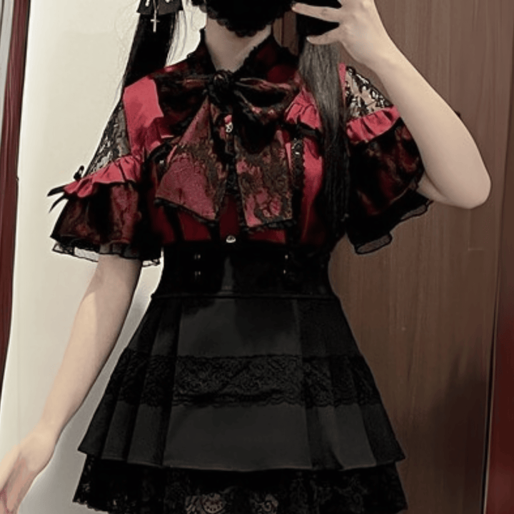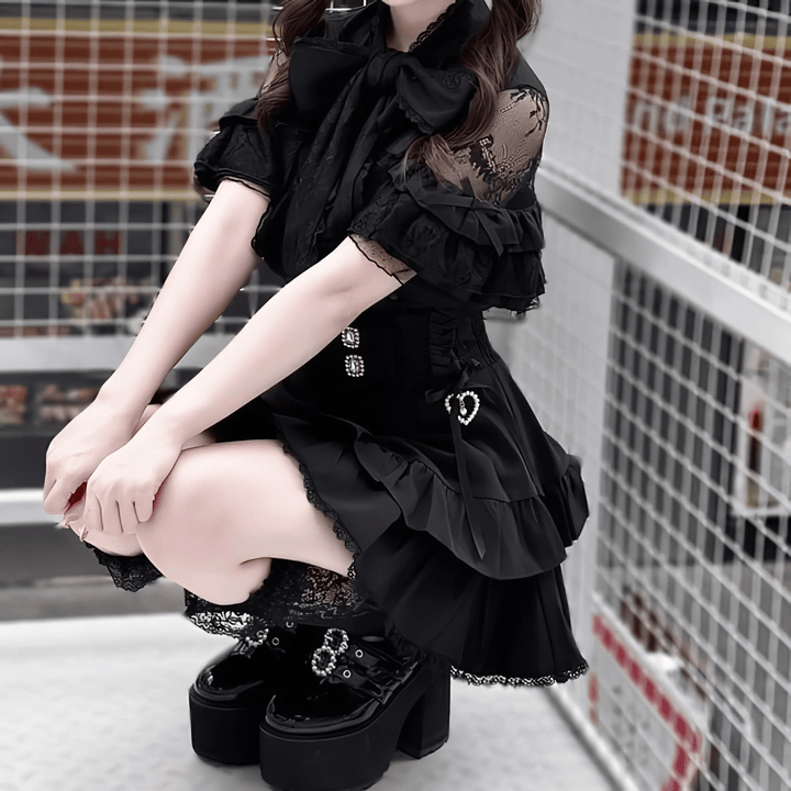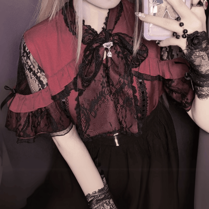 【升中味】ガーリーレースショルダーブラウス◆ブラウス 地雷系 S、M、L、XL