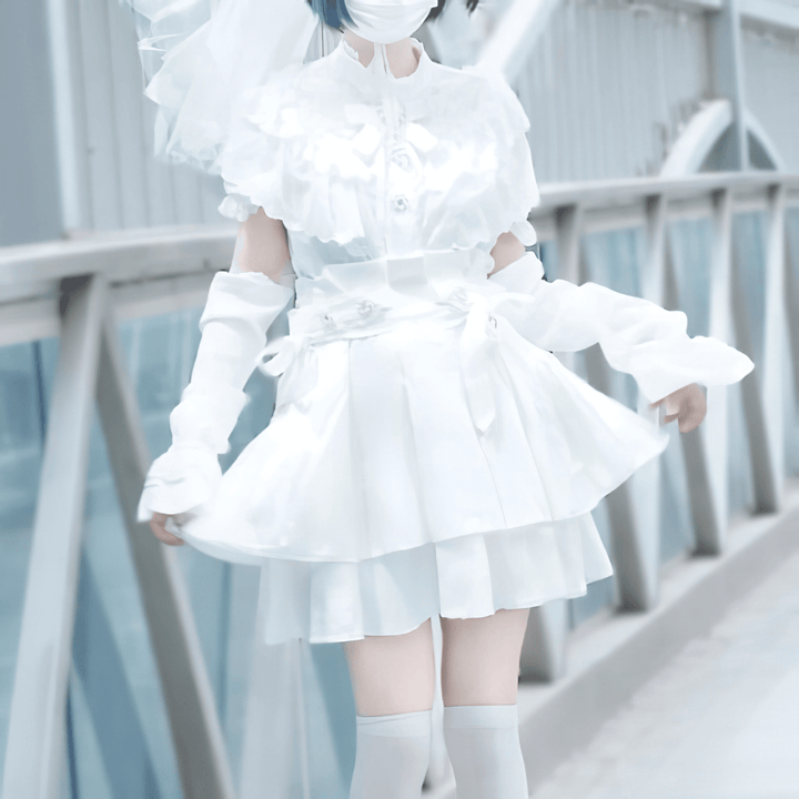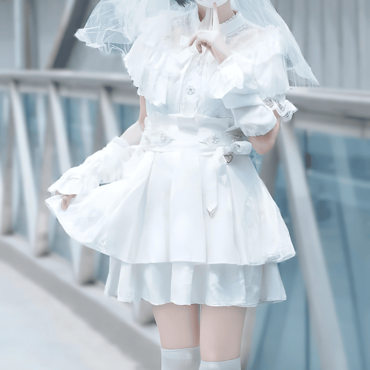 さらに、ボリュームのある袖カバーがセットになっており、地雷系・量産型コーデにぴったりの華やかなシルエットに。スカートやジャンスカと組み合わせれば、まるでお人形のようなファッションが完成します。コーデの主役として取り入れたい、特別感のある一枚です。