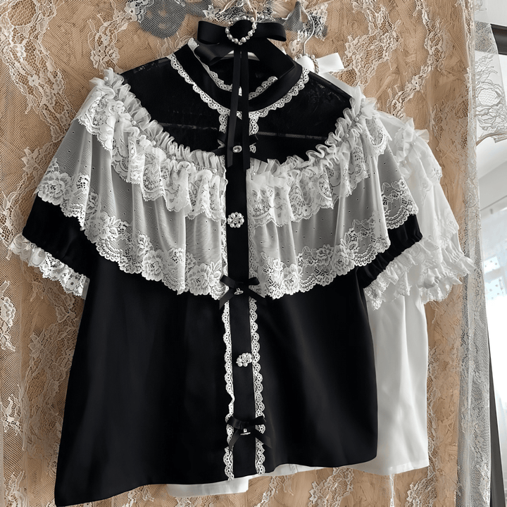 【升中味】ショート&ロングスリーブケープブラウス◆ブラウス 量産型 S、M、L、XL
