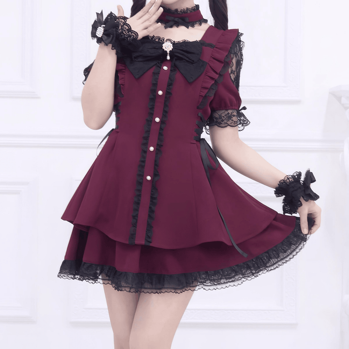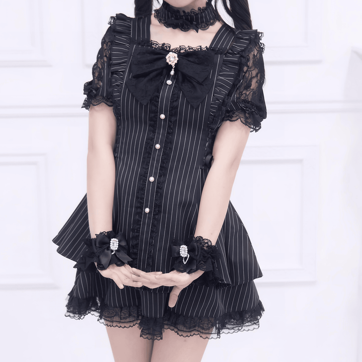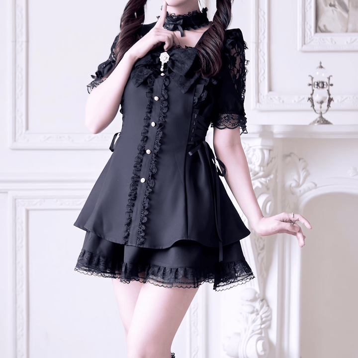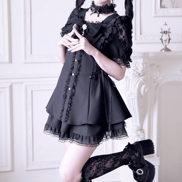 【NoGenki】レースチョーカー付クラシカルガーリーセットアップ◆セットアップ 地雷系 M、L、XL