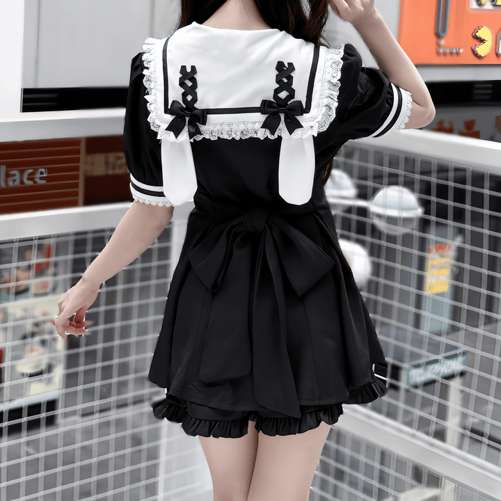 セーラー風の大きめ襟とリボンが印象的なショートパンツセット♥