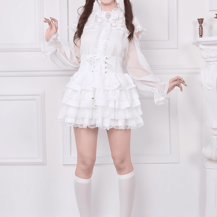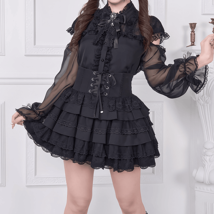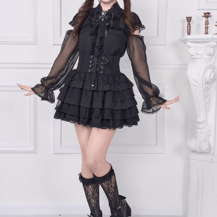 【NoGenki】フリルレースリボンシフォンブラウス◆ブラウス 地雷系 M、L