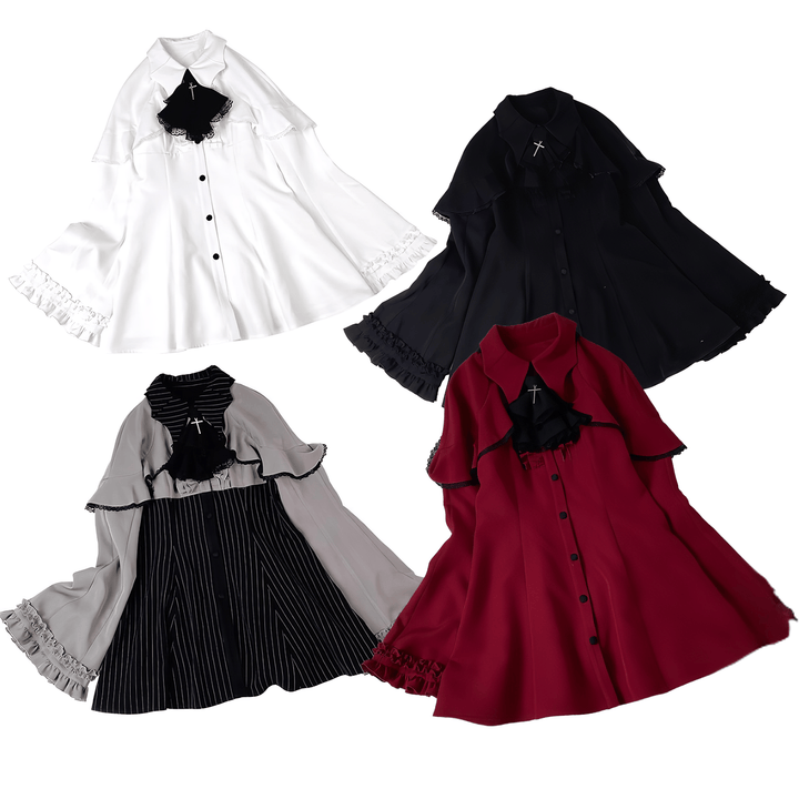 レイヤード風のデザインが視線を引き、落ち着きのあるシルエットに軽やかな動きを添えてくれます。白・灰色・黒・赤の4色展開で、それぞれが異なる雰囲気をつくれる構成です。ディテールが多く盛り込まれていますが、全体はなめらかにまとまり、普段の装いにも取り入れやすい仕立てとなっています。